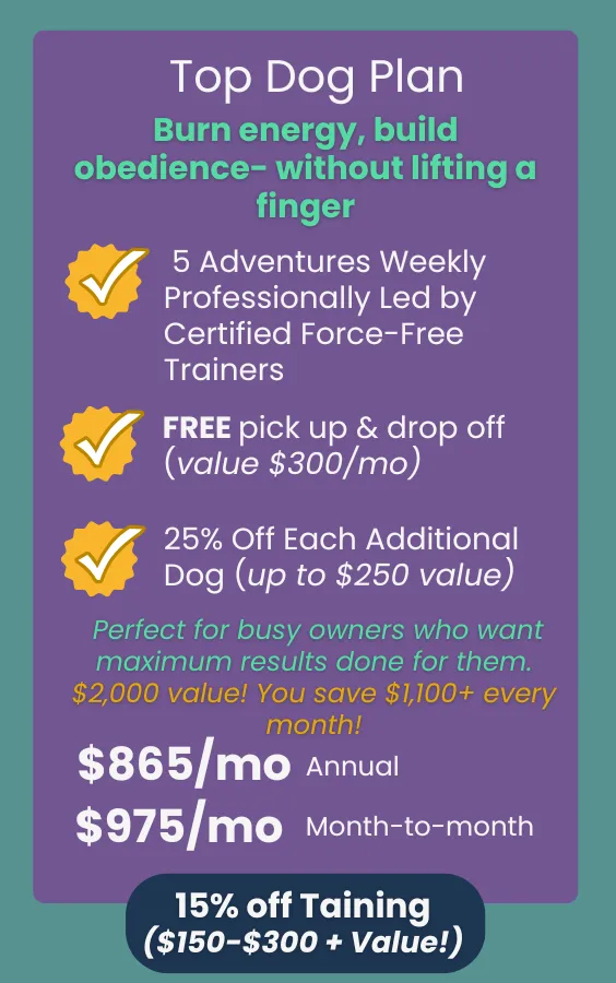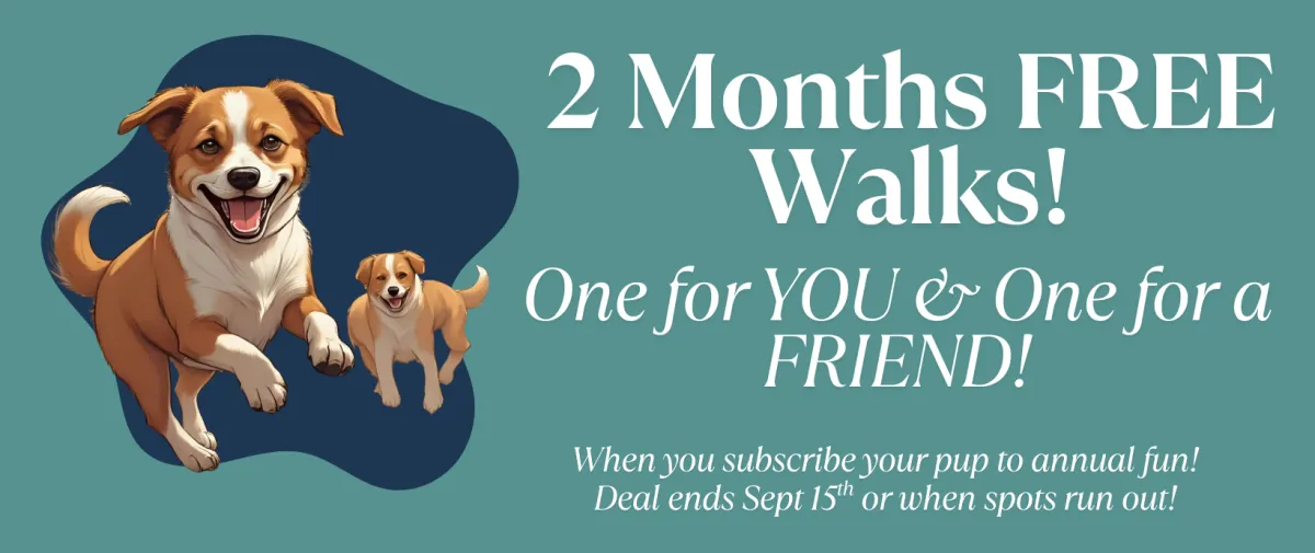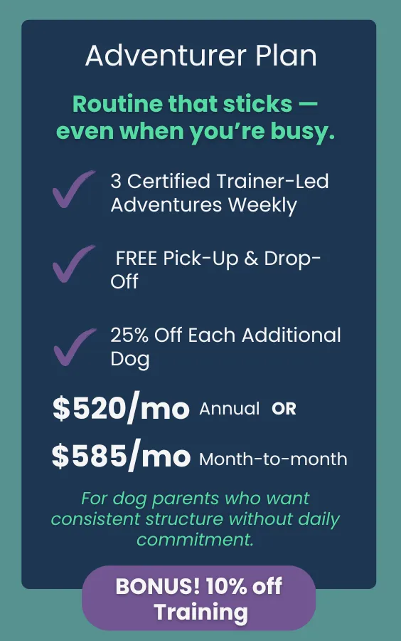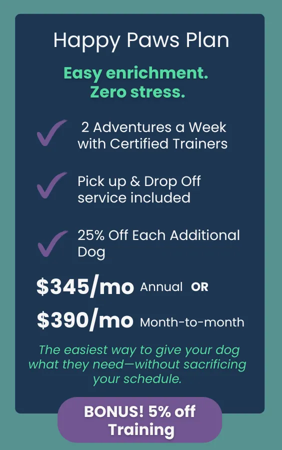 Each plan includes a set number of weekly walks billed monthly (discounted rate on annual subscription). You also get perks like training discounts off our in-person services, access to members-only dog sitting services, and peace of mind knowing your pup is in great hands!